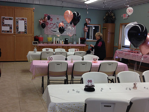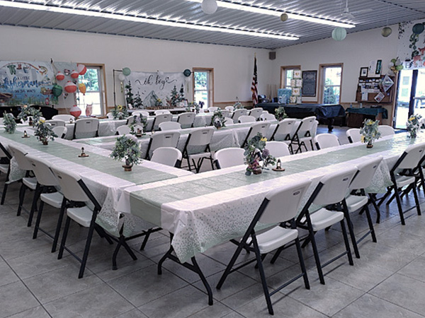 We have 14 eight-foot banquet tables and 100 folding chairs. Please inquire about other amenities (i.e. coffee pots, refrigerator, etc…) to be certain we are the right fit for your rental needs.